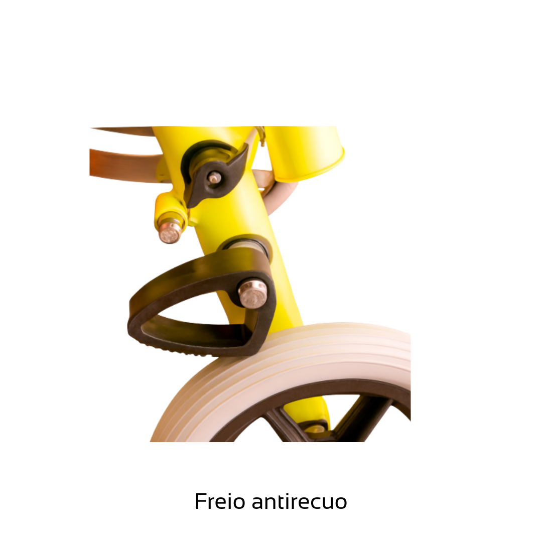 - -Freio nas rodas traseiras, sistema que não permite que se mova para trás (exceto no tamanho PP);