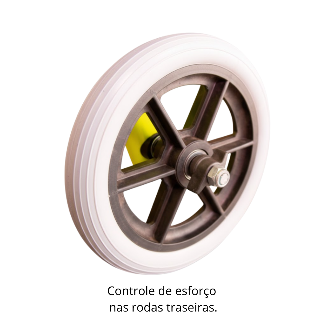 - Controle de esforço nas rodas não giratórias através de manípulos tipo borboleta;