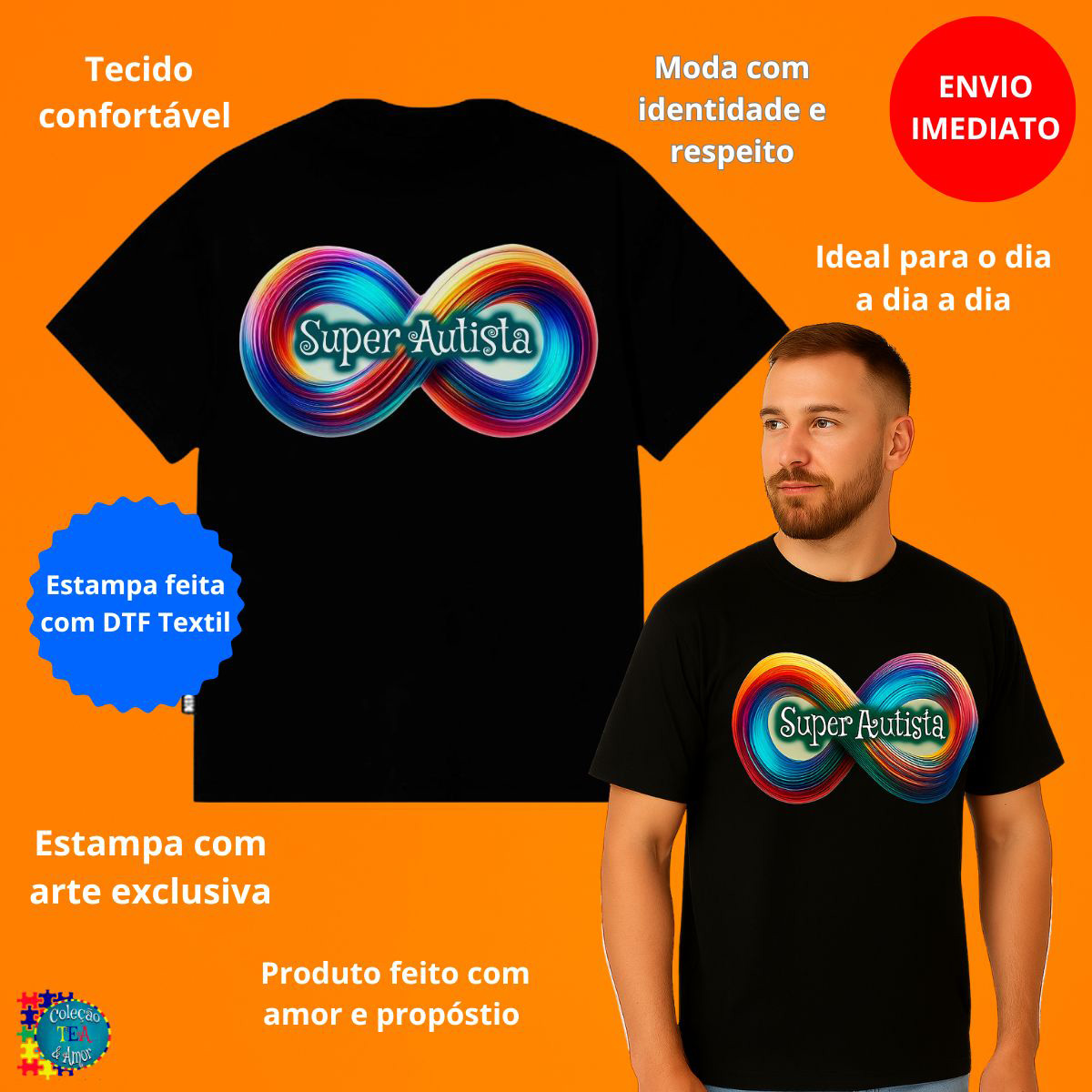 A Camisa Preta Especial Infinity Black – Super Autistas celebra a neurodiversidade com estilo, conforto e orgulho. Estampada com o símbolo do infinito em cores vibrantes e a frase “Super Autista”, é uma homenagem à singularidade e às conquistas diárias de pessoas autistas. Confeccionada em tecido 100% poliéster, oferece toque macio e caimento leve. Ideal para qualquer ocasião, une significado e versatilidade. Mais que uma peça de roupa, é uma expressão de identidade e respeito.