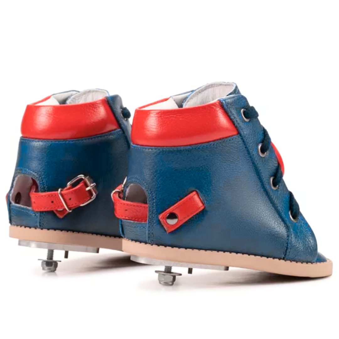 Órteses Dennis Brown projetadas de forma personalizada, com contraforte rígido em couro para garantir conforto, estabilidade e durabilidade. Auxiliam na correção da postura e alinhamento dos pés.