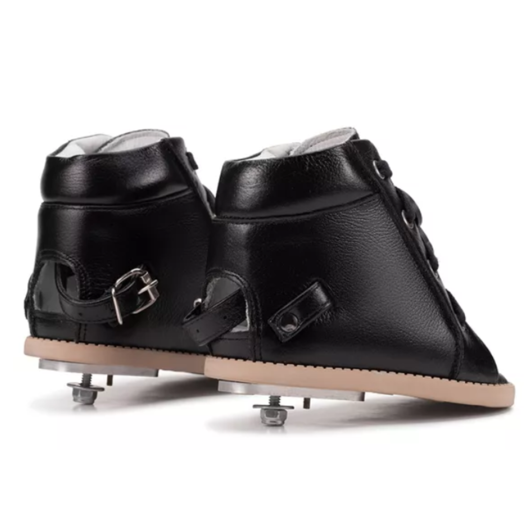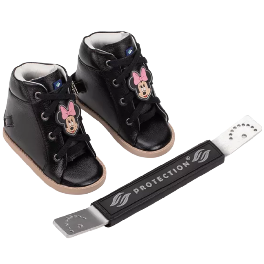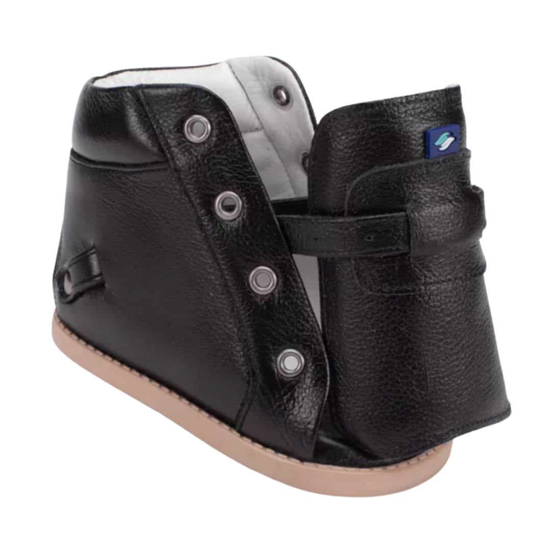 Órteses Dennis Brown projetadas de forma personalizada, com contraforte rígido em couro para garantir conforto, estabilidade e durabilidade. Auxiliam na correção da postura e alinhamento dos pés.