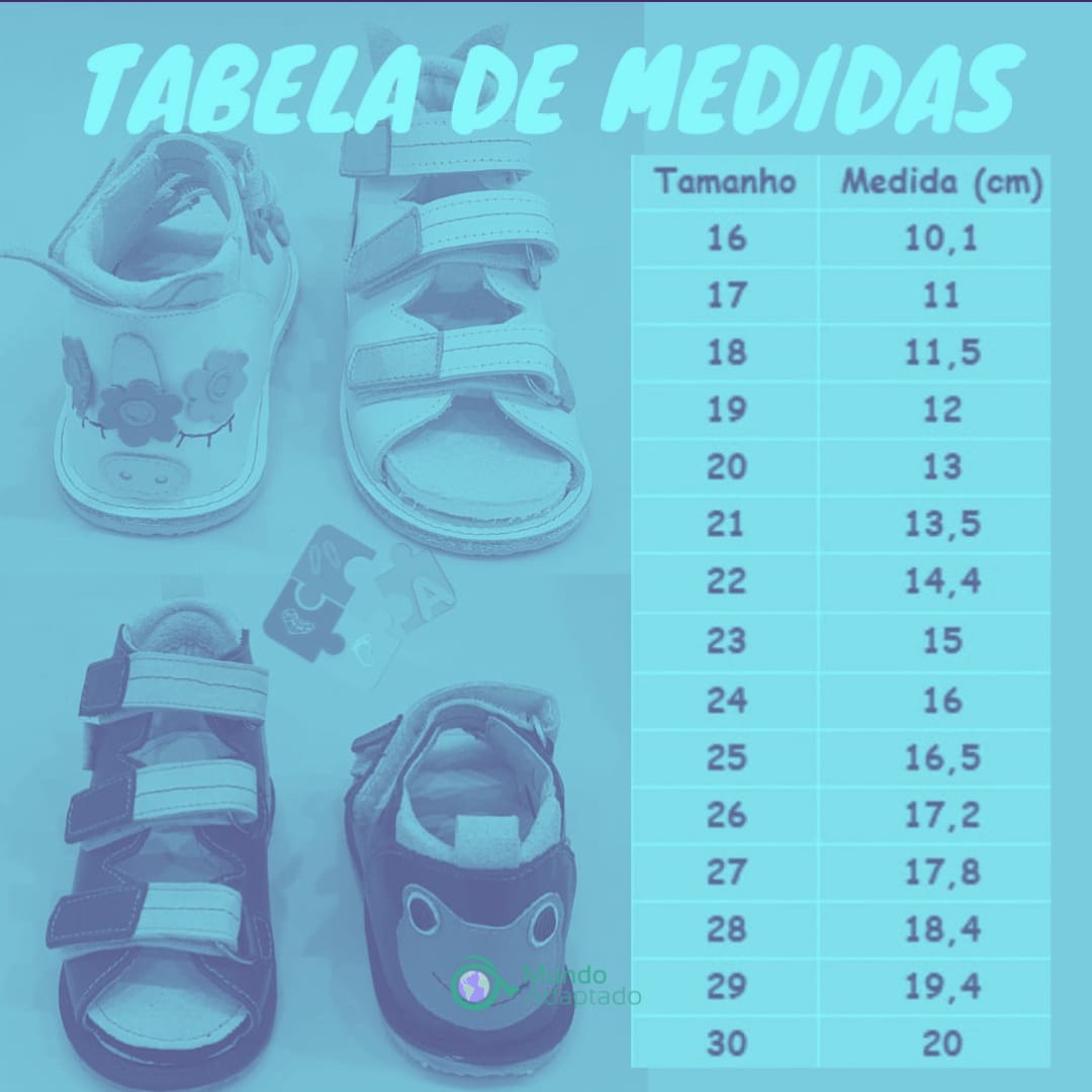 Para medir este produto, recomendamos que a criança esteja sentada e que o pé seja desenhado em um papel para que as medidas sejam precisas. Dessa forma, poderemos produzir um produto personalizado que atenda às necessidades individuais de cada cliente.